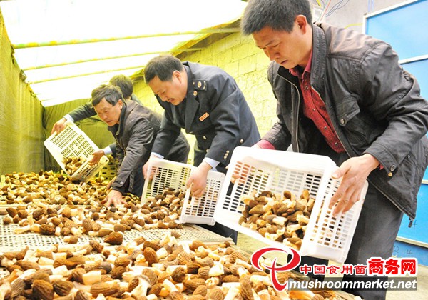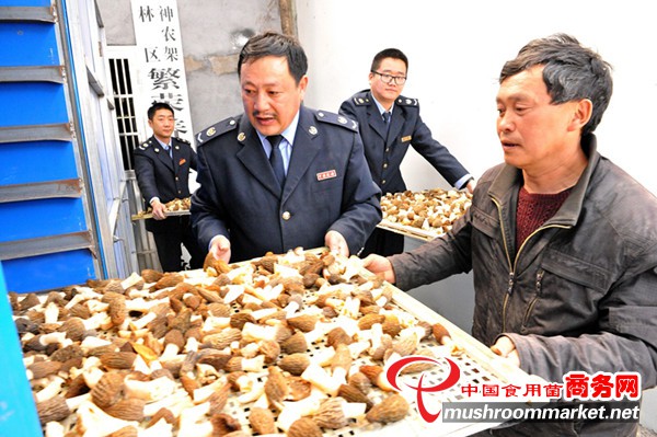 3月29日,湖北神農架林區地稅局干部職工來到扶貧點——陽日鎮龍溪村,幫助村民采摘、烘烤成熟的羊肚菌。