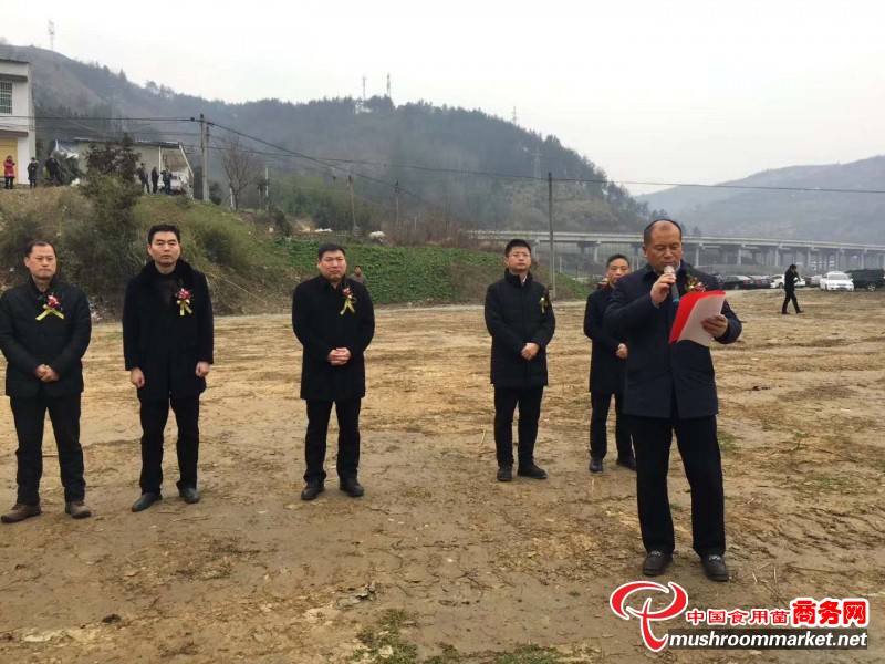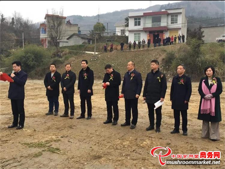 2019年2月20號上午8點58分,竹溪縣人民政府投資6500余萬元的香菇工廠化生產精準扶貧產業項目,舉行開工典禮。縣委書記余世明、縣長柯尊勇、副書記武小凱、常務副縣長蔣波等四大家領導及各部門負責人,以及湖北裕國菇業董事長雷于國參加儀式并講話。