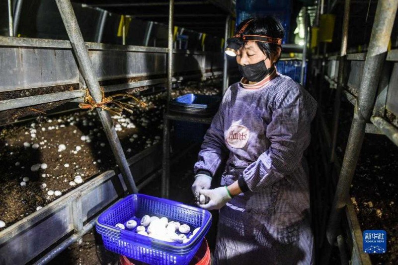 近日,在山東省泰安市岱岳區(qū)祝陽鎮(zhèn)徐家汶村永樂食用菌科技產(chǎn)業(yè)園內(nèi),雙孢菇進(jìn)入采摘期,員工們?cè)诔龉椒坷锊烧?、分揀、裝籃。目前,園區(qū)食用菌種植面積已達(dá)300余畝,年產(chǎn)食用菌4000多噸,為100多名村民提供務(wù)工增收的渠道。