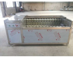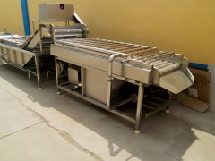 土豆清洗機,毛輥清洗機,胡蘿卜清洗機整機箱體采用304不銹鋼精致而成,不銹蝕,便于清潔衛生。特殊要求可根據客戶的需求進行定制。整機結構設計合理,占地面的小,生產效率高,便于安裝,維護方便等特點。設備配備噴淋裝置,在清洗過程中遍噴淋邊清洗,節省水能。設備框架焊接牢固,整機運行平穩,無噪音。采用高品質,高韌性毛刷,經久耐用。土豆清洗機,毛輥清洗機,胡蘿卜清洗機毛刷可采用普通毛刷跟波浪式毛刷,根據產品特性自行選擇。毛輥清洗機的清洗原理及流程是毛輥清洗機運轉時,產品跟隨毛輥轉動。360度的旋轉,360度的清洗,在毛刷跟產品滾動的同時,噴淋水對產品進行沖刷,保證產品清洗無死角,有效的去除產品表面及夾縫的污垢達到良好的清洗效果。并且節省水能。土豆清洗機,毛輥清洗機,胡蘿卜清洗機的雜質排出主要原理是噴淋水的沖刷,通過毛輥的運轉,將清洗下來的雜質轉送到設備的底部,設備底部設計有回收料斗,將雜質進行統一集中排出。毛刷清洗機主要構成由電機,框架,8-13支毛刷等組成。目前我公司生產的型號有:1200型,1500型,1800型,2000型四款型號,是我公司吸取了國內外對瓜果加工機械的特點,取其優點設計制作。簡單,耗能低,占地小,效率高是它獨特具有的特點。