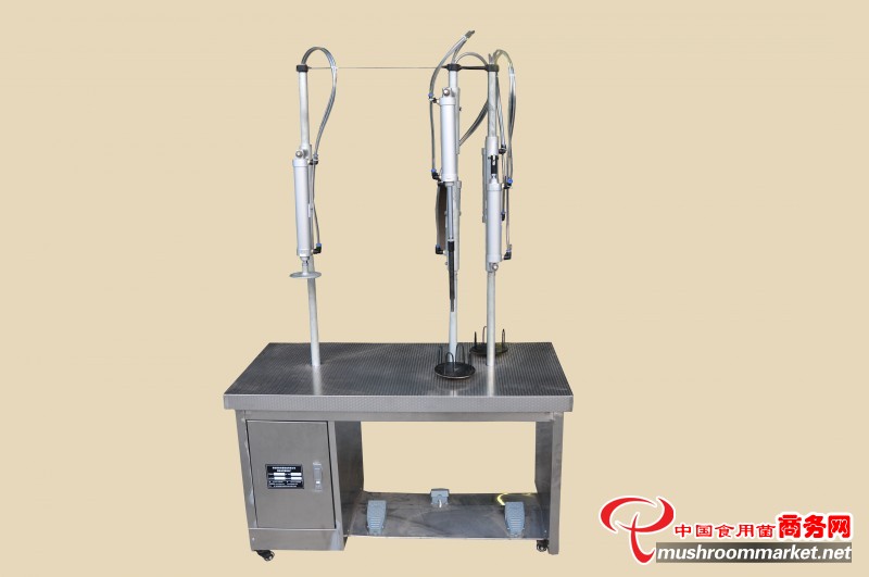 說明:1.采用氣泵動力和腳踏式觸碰開關;2.本機型為袋料立式氣動窩口;3.需配置1.1KW氣泵;4.能配用各種型號的接種棒.
