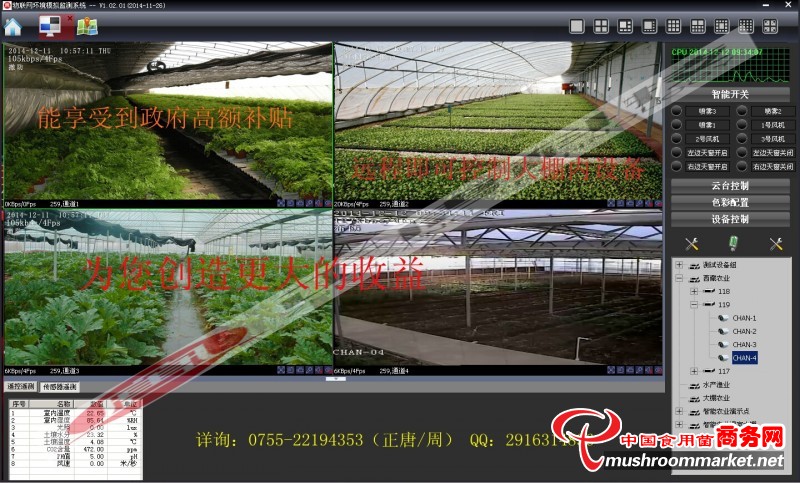 長期有效“全視界”食用菌智能栽培管控系統特色: