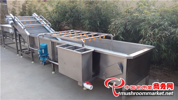蔬菜清洗機是我公司生產的一款針對葉類蔬菜,醬菜,食用菌等產品的清洗設備。其主要構造由清洗池,網帶,電機,水泵,噴淋管等幾部分組成。香菇清洗機 食用菌清洗線設備設計合理大方,清洗效果顯著。水可循環使用,在節省人工的同時更節省水資源。整機采用食品級不銹鋼制作而成。清洗池邊框一次性折彎而成,增加設備的耐用性跟穩定牢固性。加大改進版的循環過濾水箱,處理雜質更徹底,通過水流自行排出部分雜質,泥沙的過濾沉淀,通過水泵循環的抽引,全部匯集到過濾水箱底部,到達一定位置,進行排出。高壓噴淋水的設計,讓產品在清洗池中翻滾對沖,清洗徹底。在震蕩的過程中,清洗產品效果更好。產品在出料時,對產品進行二次沖洗,這個過程不僅清洗了產品,還對水槽中的水進行及時的補充,設備配備溢水口,在補充的同時也排出了部分水,保證清洗槽里水的清潔度。香菇清洗機 食用菌清洗線設備電機采用擺線手調式電機,這種電機的特點是,工作力度大,方便可調,也可根據客戶要求配備變頻電機,采用變頻調速。設備底部傾斜式的設計,不僅可以將泥沙匯聚,更能保證在清洗設備的時候,達到快速有效的匯集排水,保證設備在清洗時達到無存水,無死角的目的。