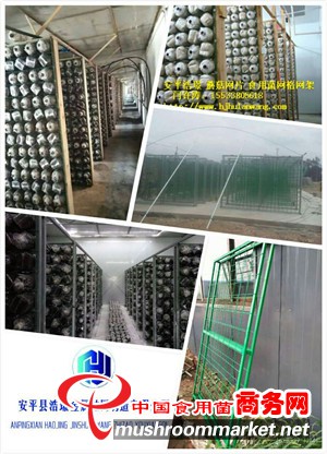 長期有效食用菌網格架樣式多種,有單純蘑菇網片搭配用戶自己做的架子,還有浩璟提供的蘑菇網片與立柱的組合使用.