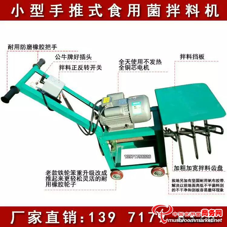 本機標配2.2千瓦單相全銅電機,基地、菌種廠、種植大戶等可配3千瓦三相電機。