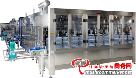 工藝流程:上瓶→1道瀝干→2道堿液沖洗→2道回水沖洗→2道藥水消毒→1道回水沖洗一2道純凈水→1道瀝干→1道過(guò)渡→灌水→理蓋套蓋→壓蓋→外包裝