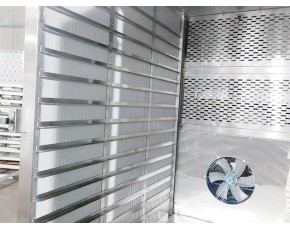 該款設備帶有30個0.8*1米網盤,單次可烘500斤左右的物料