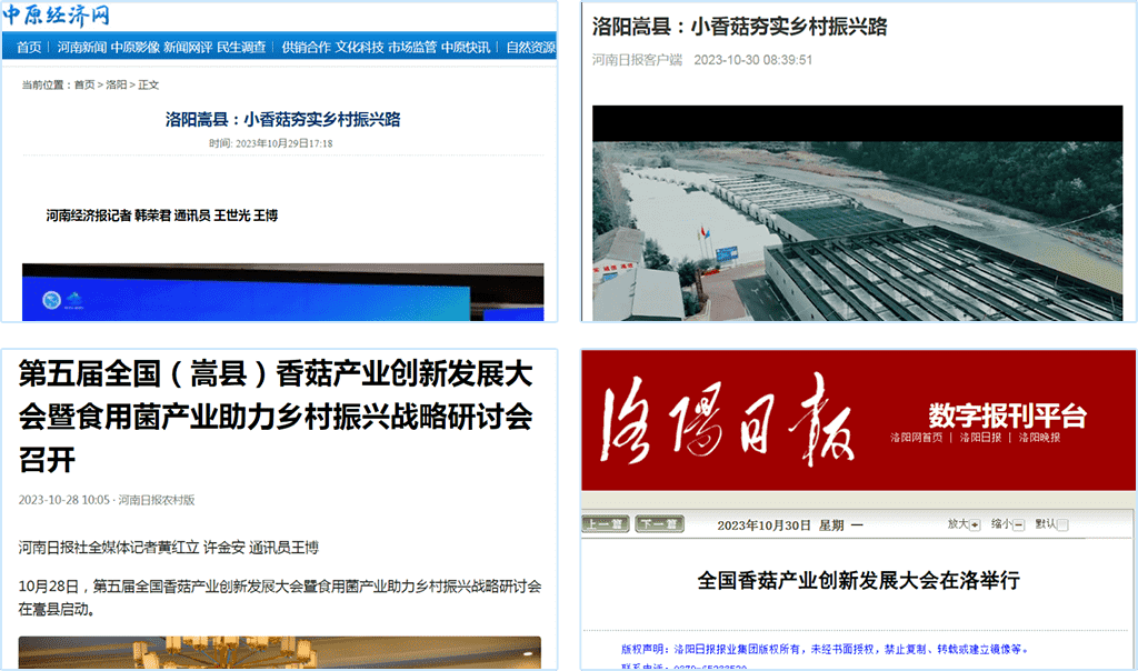 10月27-29日,“第五屆全國(嵩縣)香菇產業創新發展大會暨食用菌產業助力鄉村振興戰略研討會”在河南嵩縣圓滿召開。大會聚焦食用菌(香菇)產業助力鄉村振興,組織了食用菌產業助力鄉村振興主旨報告會、香菇產業可持續發展專題研討會、香菇產業創新發展產品展、嵩縣產業推介會、嵩縣食用菌產業可持續發展專家座談會、香菇產業品牌評選、現場觀摩等活動。